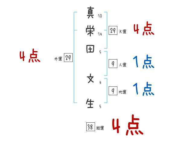 真栄田文生さんの画数の鑑定結果