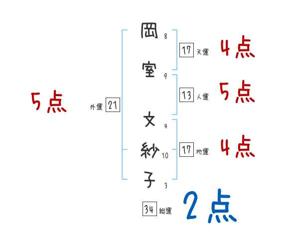 岡室文紗子さんの画数の鑑定結果