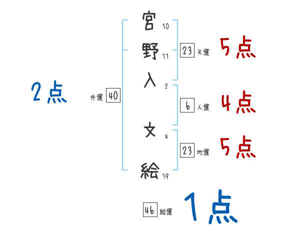 宮野入文絵さんの画数の鑑定結果