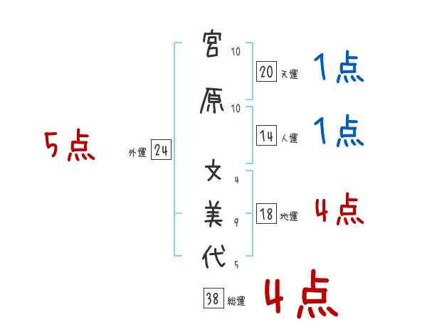 宮原文美代さんの画数の鑑定結果