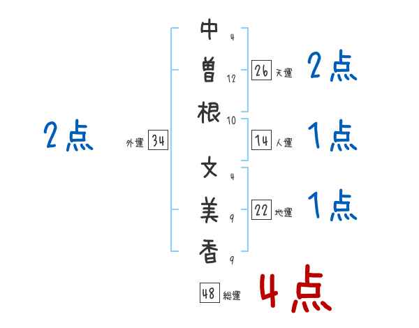 中曽根文美香さんの画数の鑑定結果