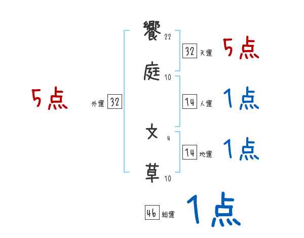 饗庭文草さんの画数の鑑定結果