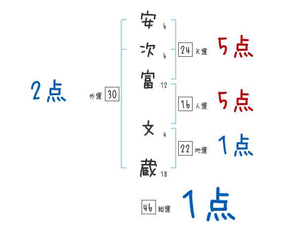 安次富文蔵さんの画数の鑑定結果