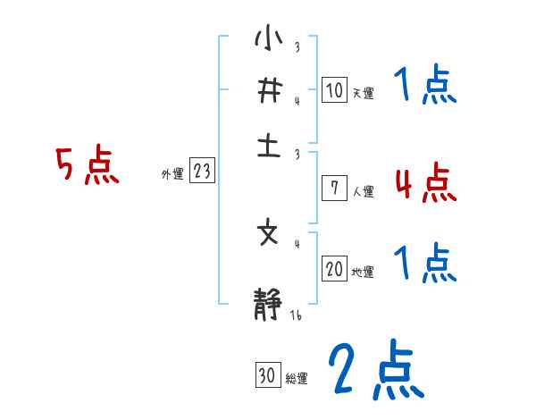 外運![]() | 小井土文静さんの外運は23画の5つ星!想像力に優れ活力がある。一代で成功し名誉を手に入れる。 生活面を象徴する運勢です。外部から受ける影響力を表し、結婚運、家庭運や職場、環境への順応性を表します。 |