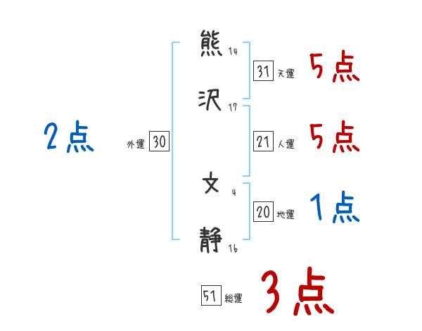熊沢文静さんの画数の鑑定結果