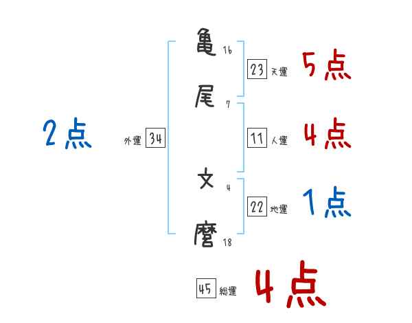 亀尾文麿さんの画数の鑑定結果
