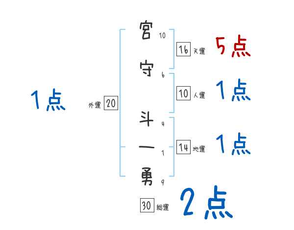 宮守斗一勇さんの画数の鑑定結果