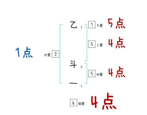 天運![]() | 乙斗一さんの天運は1画の5つ星!行動力、指導力があり出世し繁栄する。幸運に恵まれる。 家系が持つ宿命的な運勢を表します。祖先から受け継いだ苗字ですので自分の力が及びません。家柄を象徴します。 |
