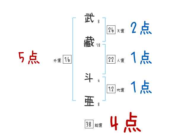 武藏斗亜さんの画数の鑑定結果
