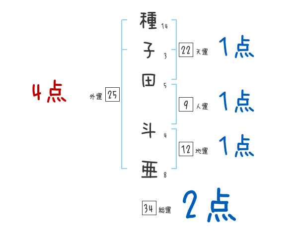 総運![]() | 種子田斗亜さんの総運は34画の2つ星!独創性に優れるが、自尊心が強く災難に注意しましょう。 あなたの人生を表す1番重要な運勢です。生涯を通じて影響する総合運となり、主に50歳以降の晩年期に影響を及ぼします。 |