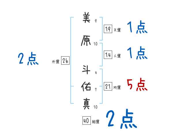 外運![]() | 美原斗佑真さんの外運は26画の2つ星!波瀾万丈かも。信頼できる人を大事にしましょう。 生活面を象徴する運勢です。外部から受ける影響力を表し、結婚運、家庭運や職場、環境への順応性を表します。 |