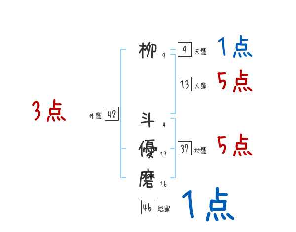天運![]() | 栁斗優磨さんの天運は9画の1つ星!消極的で才能を発揮することが苦手なことも。周りの意見に耳を傾けましょう。 家系が持つ宿命的な運勢を表します。祖先から受け継いだ苗字ですので自分の力が及びません。家柄を象徴します。 |