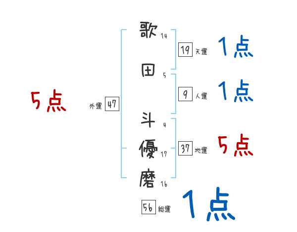 歌田斗優磨さんの画数の鑑定結果