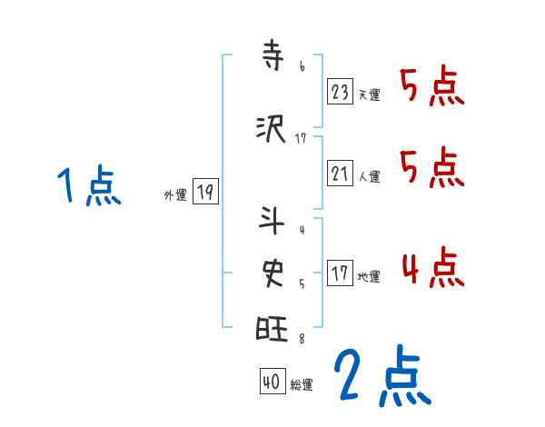 寺沢斗史旺さんの画数の鑑定結果
