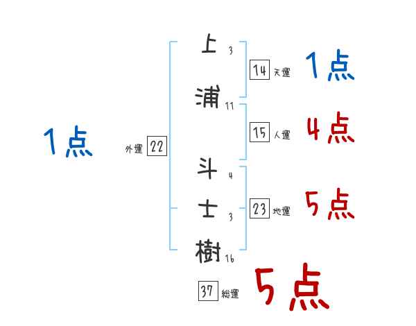 上浦斗士樹さんの画数の鑑定結果