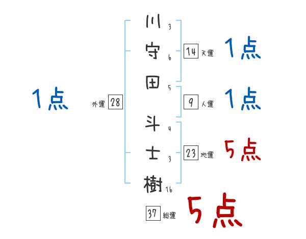 外運![]() | 川守田斗士樹さんの外運は28画の1つ星!家庭環境に注意。スポーツで活躍できる能力があるかも。 生活面を象徴する運勢です。外部から受ける影響力を表し、結婚運、家庭運や職場、環境への順応性を表します。 |