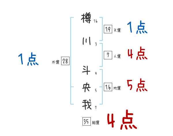 外運![]() | 樽川斗央我さんの外運は28画の1つ星!家庭環境に注意。スポーツで活躍できる能力があるかも。 生活面を象徴する運勢です。外部から受ける影響力を表し、結婚運、家庭運や職場、環境への順応性を表します。 |