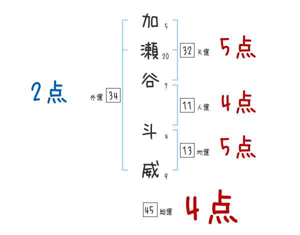 天運![]() | 加瀬谷斗威さんの天運は32画の5つ星!柔軟性があり成功する。チャンスが多く金運が良い。 家系が持つ宿命的な運勢を表します。祖先から受け継いだ苗字ですので自分の力が及びません。家柄を象徴します。 |