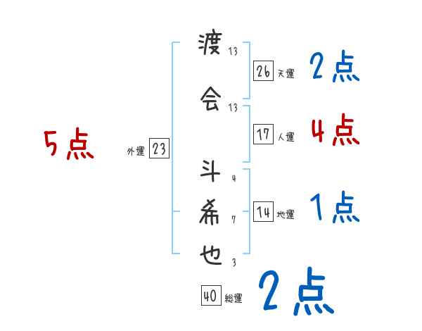 天運![]() | 渡会斗希也さんの天運は26画の2つ星!波瀾万丈かも。信頼できる人を大事にしましょう。 家系が持つ宿命的な運勢を表します。祖先から受け継いだ苗字ですので自分の力が及びません。家柄を象徴します。 |