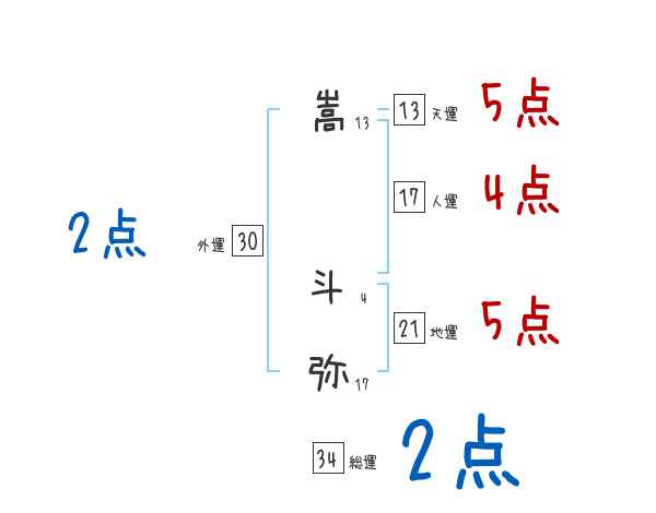 嵩斗弥さんの画数の鑑定結果
