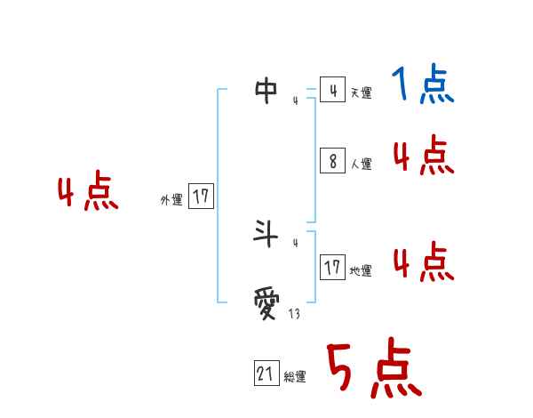 中斗愛さんの画数の鑑定結果