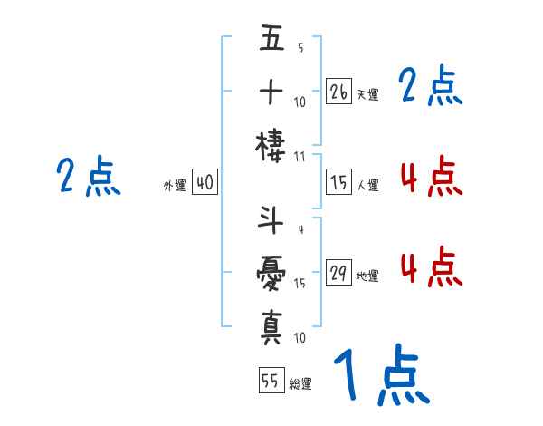 五十棲斗憂真さんの画数の鑑定結果