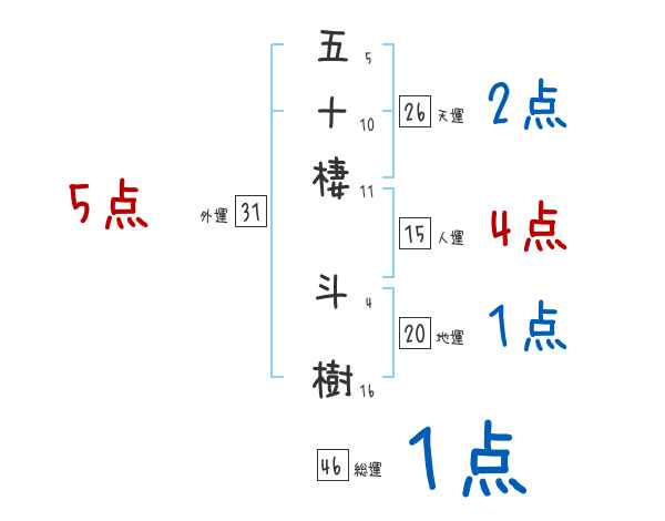 人運![]() | 五十棲斗樹さんの人運は15画の4つ星!人徳があり出世する。順調に物事を進め円満な人生。 性格や才能などを表す2番目に重要な運勢です。人間関係や協調性、社会的な成功に影響します。主に20歳から50歳ぐらいまでの中年期の運勢を表します。 |