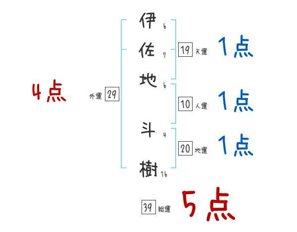 天運![]() | 伊佐地斗樹さんの天運は19画の1つ星!優れた才能を持ちますが、協調性が足りないことも。周りの人と協力する事を意識しましょう。 家系が持つ宿命的な運勢を表します。祖先から受け継いだ苗字ですので自分の力が及びません。家柄を象徴します。 |
