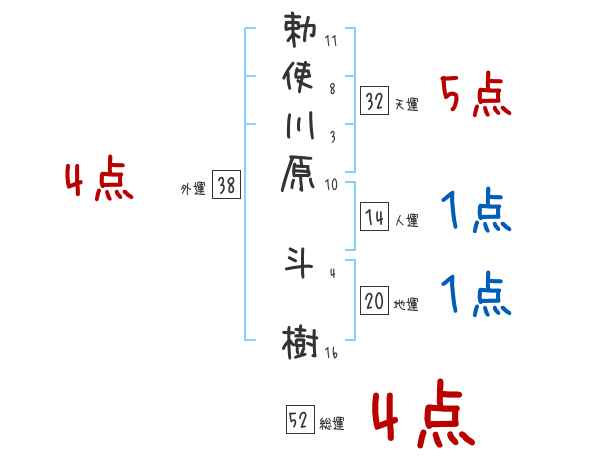 勅使川原斗樹さんの画数の鑑定結果