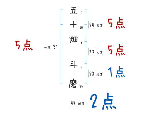 五十畑斗磨さんの画数の鑑定結果