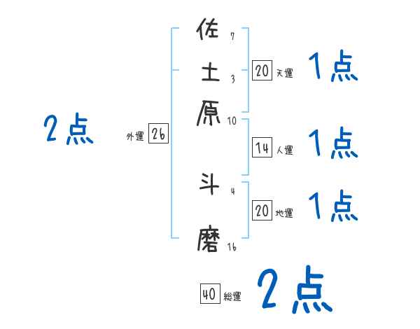 佐土原斗磨さんの画数の鑑定結果