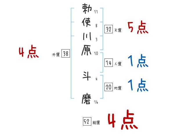 勅使川原斗磨さんの画数の鑑定結果