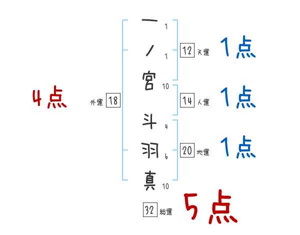 一ノ宮斗羽真さんの総運は32画の5つ星