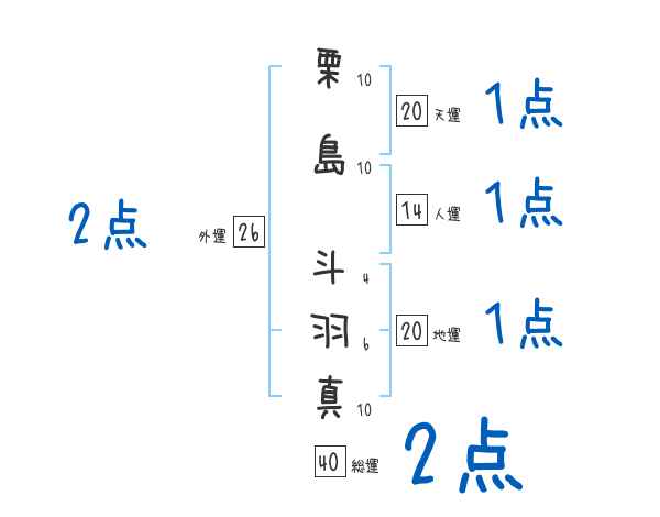 栗島斗羽真さんの画数の鑑定結果
