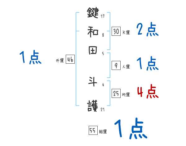 天運![]() | 鍵和田斗護さんの天運は30画の2つ星!浮き沈みの激しさに注意しましょう。 家系が持つ宿命的な運勢を表します。祖先から受け継いだ苗字ですので自分の力が及びません。家柄を象徴します。 |