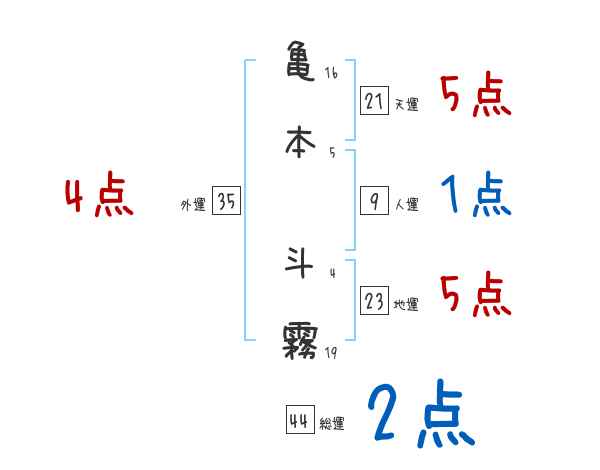 亀本斗霧さんの画数の鑑定結果