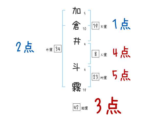 総運![]() | 加倉井斗霧さんの総運は42画の3つ星!病気に注意。多芸であるが消極的でおとなしい。 あなたの人生を表す1番重要な運勢です。生涯を通じて影響する総合運となり、主に50歳以降の晩年期に影響を及ぼします。 |