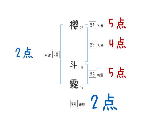 櫻斗霧さんの画数の鑑定結果