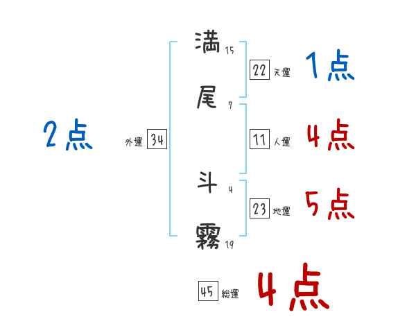 満尾斗霧さんの画数の鑑定結果