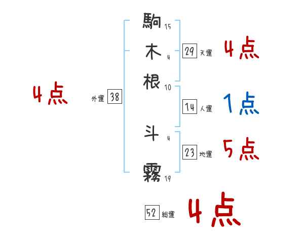 駒木根斗霧さんの画数の鑑定結果
