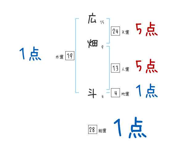 広畑斗さんの画数の鑑定結果