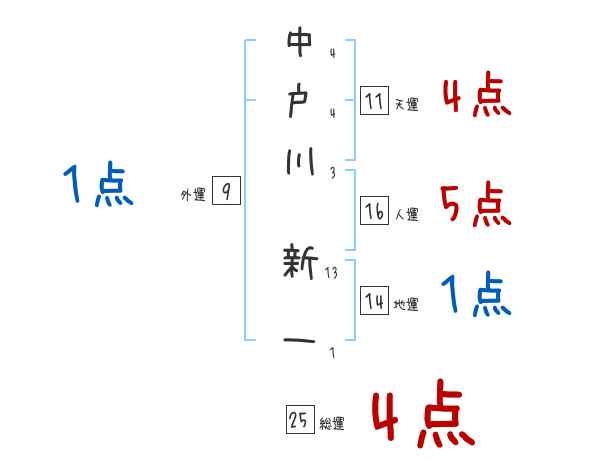 人運![]() | 中戸川新一さんの人運は16画の5つ星!人望が厚く大きく発展する。逆転成功が見える。 性格や才能などを表す2番目に重要な運勢です。人間関係や協調性、社会的な成功に影響します。主に20歳から50歳ぐらいまでの中年期の運勢を表します。 |