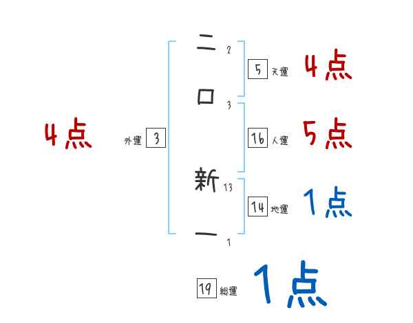 二口新一さんの画数の鑑定結果