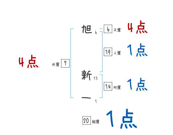 旭新一さんの画数の鑑定結果