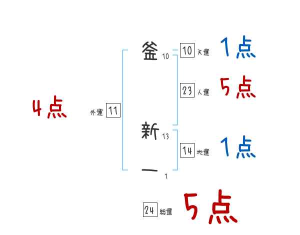 釜新一さんの画数の鑑定結果