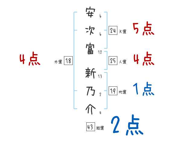安次富新乃介さんの画数の鑑定結果