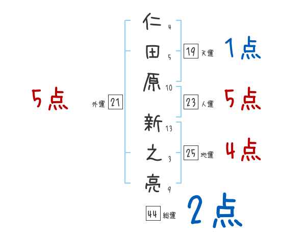 仁田原新之亮さんの画数の鑑定結果