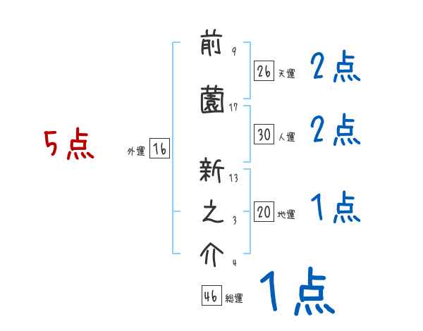前薗新之介さんの画数の鑑定結果