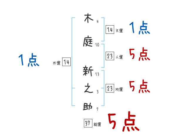 総運![]() | 木庭新之助さんの総運は37画の5つ星!努力家で順応性に優れる。現実的な考え方ができ忠実に物事をこなす。 あなたの人生を表す1番重要な運勢です。生涯を通じて影響する総合運となり、主に50歳以降の晩年期に影響を及ぼします。 |
