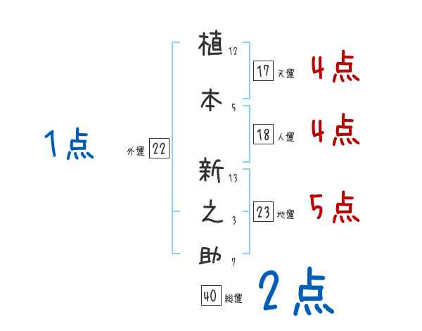 植本新之助さんの画数の鑑定結果